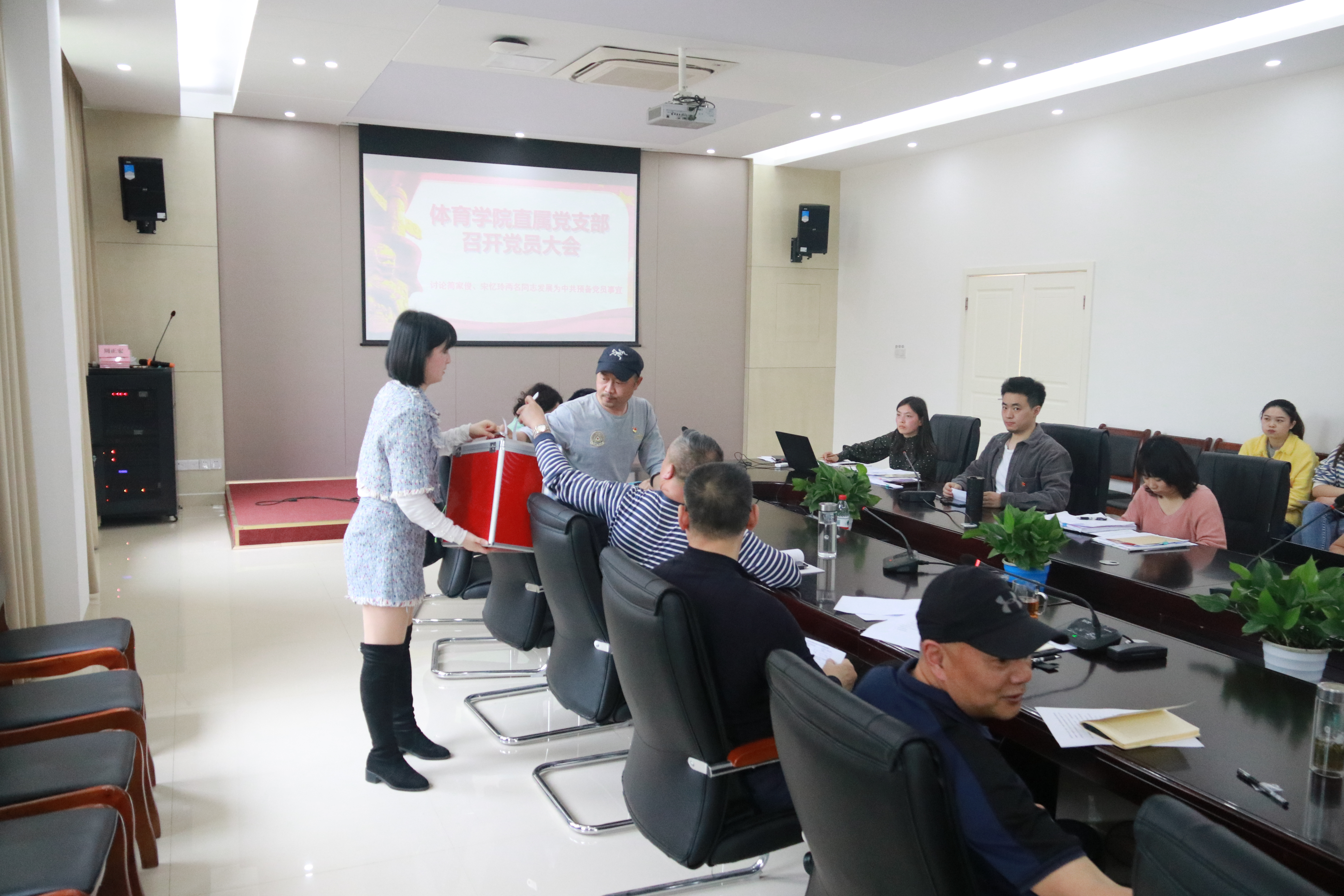 3月30日,体育学院直属党支部在游泳池二楼会议室召开全体党员大会,讨论审议关于简家俊和宋忆玲两名入党积极分子转为中国共产党预备党员的申请事宜。体育学院直属党支部全体党员参会,应到50人,实到35人。会议由直属党支部书记杨远波主持。
