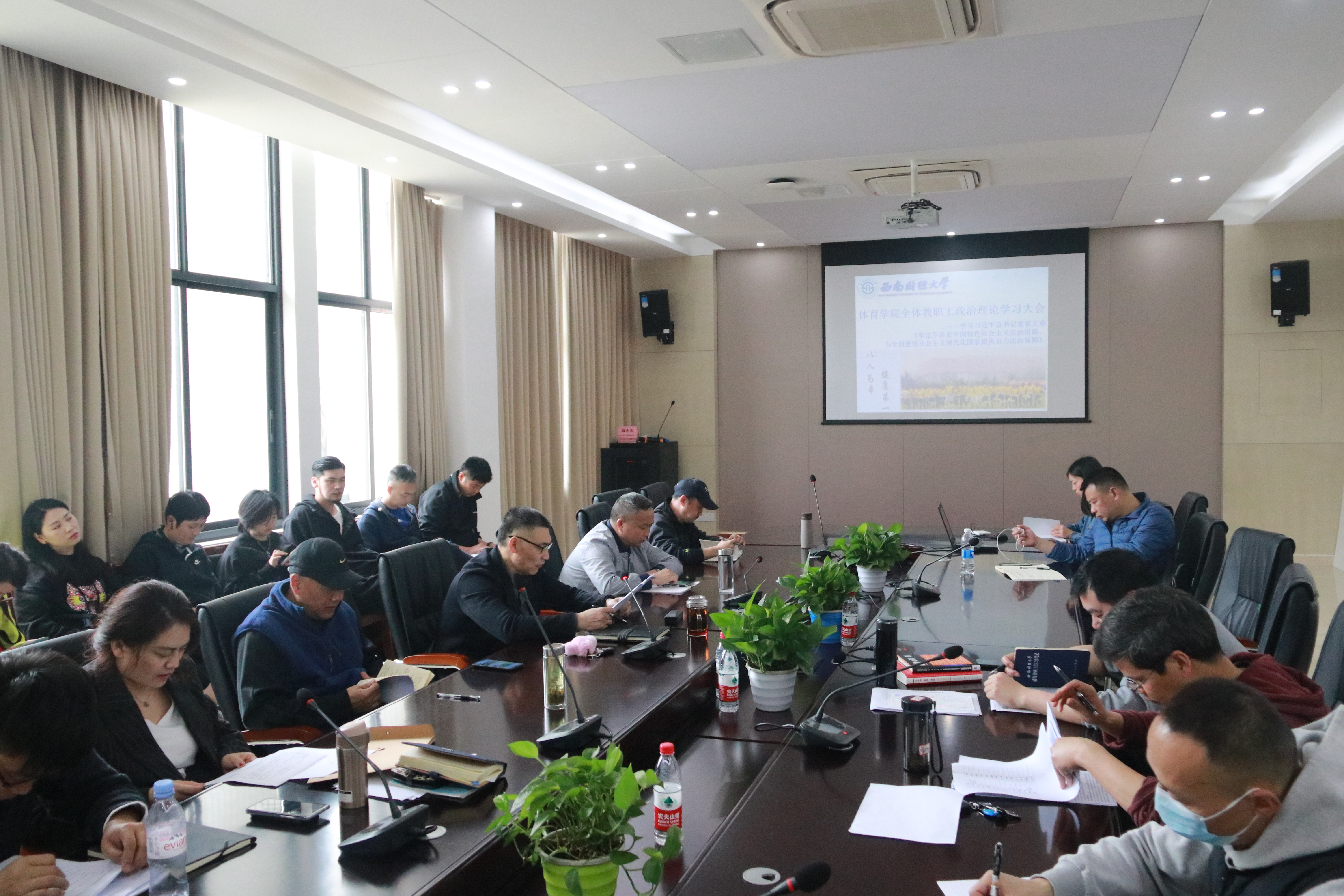 4月13日,体育学院在游泳池201会议室召开全体教职工政治理论学习会。学院全体教职工参加,会议由杨远波院长主持。