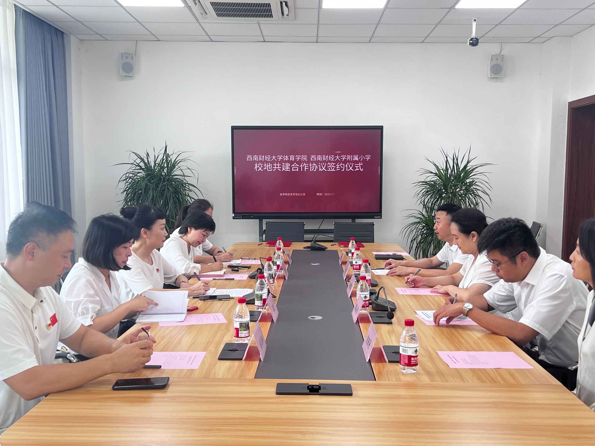 7月1日,西南财经大学体育学院与西南财经大学附属小学校地共建合作协议签约仪式在光华校庆体育馆会议室举行。西南财经大学附属小学党支部书记、校长张幼玲,专职副书记罗乔、副校长马毅;西南财经大学校工会常务副主席杨熳霞,体育学院副院长(主持工作)陈丛刊,党委副书记、纪委书记李治等出席签约仪式。签约仪式由李治主持。